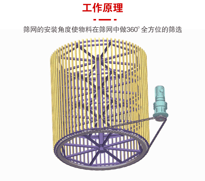 大型滾筒篩體大致分為:滾筒,驅動裝置以及皮帶輸送三個部分,產品的結構比較簡單,維修方便。